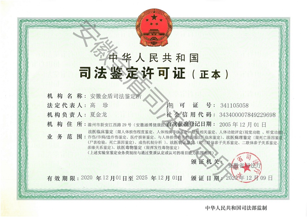 安徽金盾司法鉴定所于2005年12月1日由安徽省司法厅批准成立,依托安徽涵博健康集团医院建立的独立司法鉴定机构,业务范围为法医临床鉴定、法医物证鉴定、法医毒物鉴定。现有司法鉴定人22人,拥有临床各相关科室的主任等经验丰富的技术人员,其中高级职称为7人,中级职称12人,从业人员均具有资格证书和执业证书。鉴定所于2018年8月19日首次通过实验室认可与国家级资质认定现场评审,后分别于2019年、2020年、2023年通过监督评审和复评审。